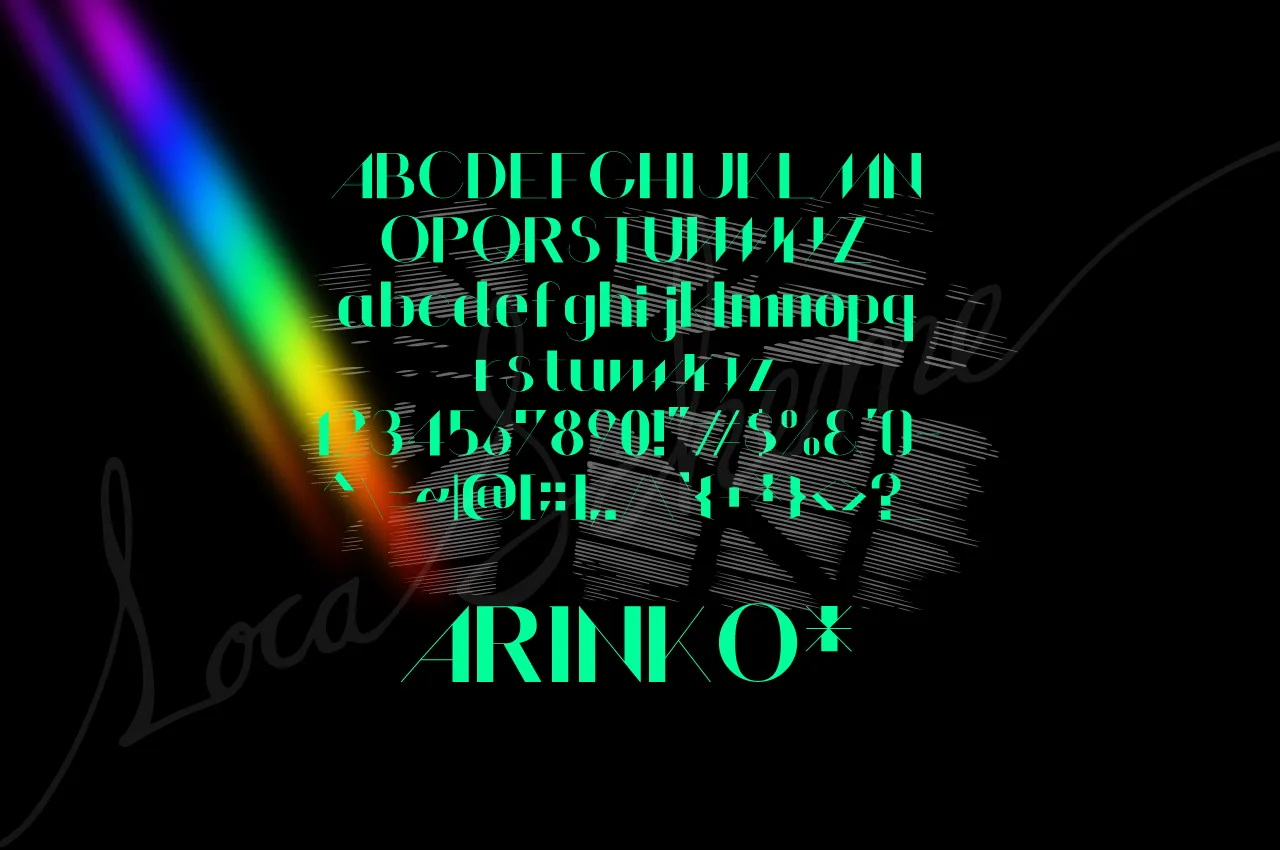 極細の斜めラインで構成された風変わりなフォントですが、ロゴなどにお使いいただくと格好いいと思います。今後BOLD体の更新予定があります。